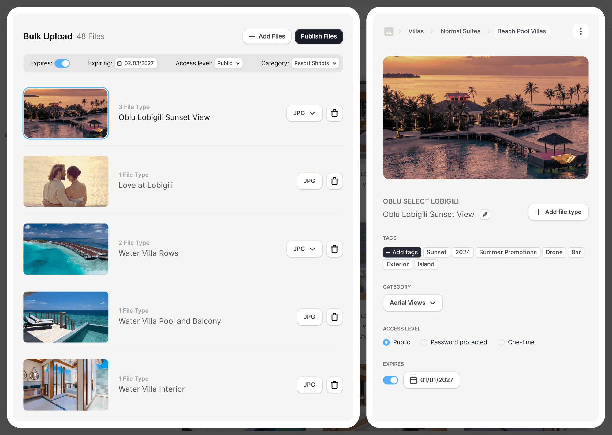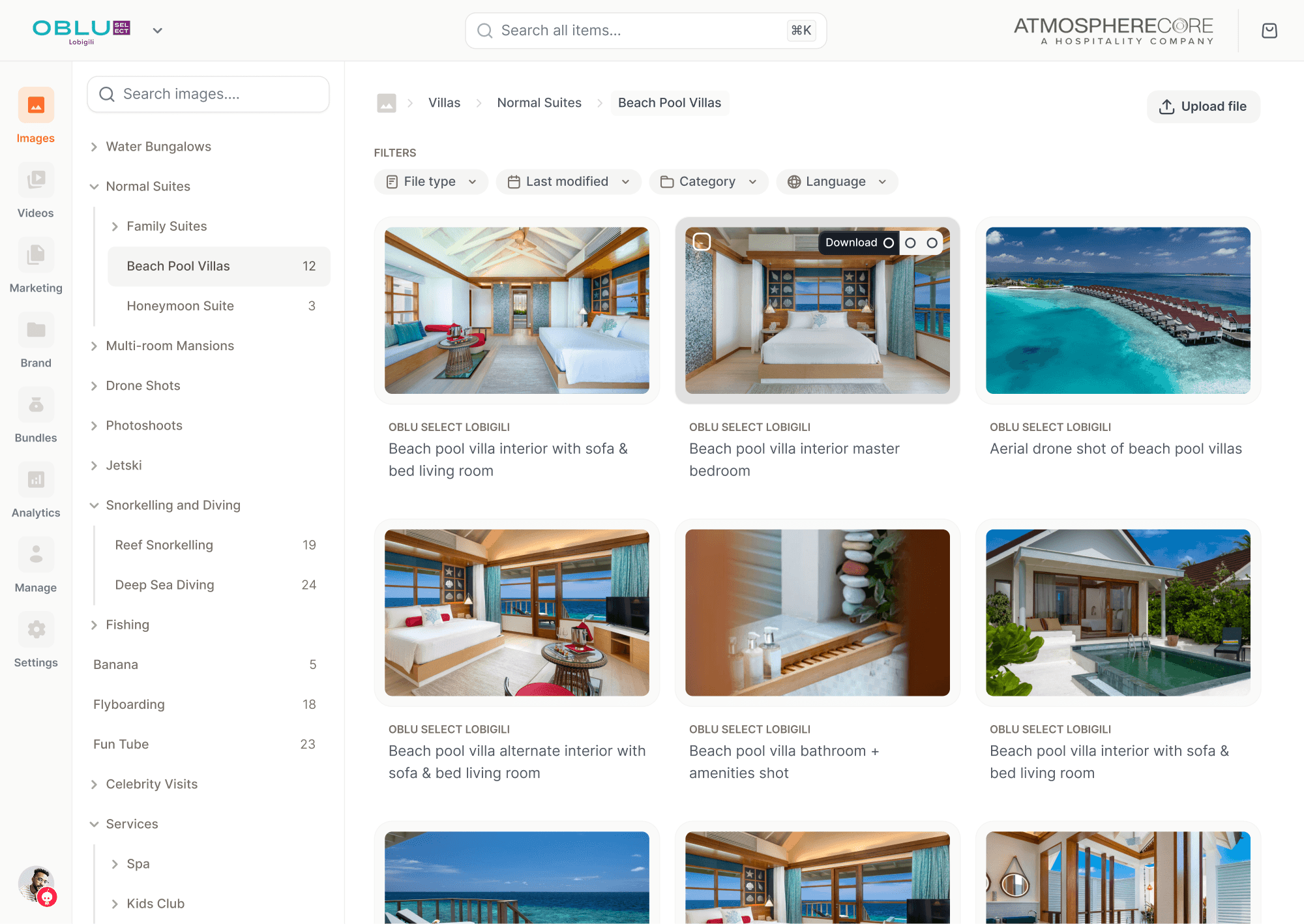 The screens below are UI designs for a complex file management system supporting storage of various file types, easy single and bulk download options, bulk upload options, along with admin features such as analytics and managing users.